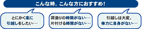 とにかく楽に引越しを済ませたい方、時間に余裕の無い方など、とにかく全てお任せしたい方
